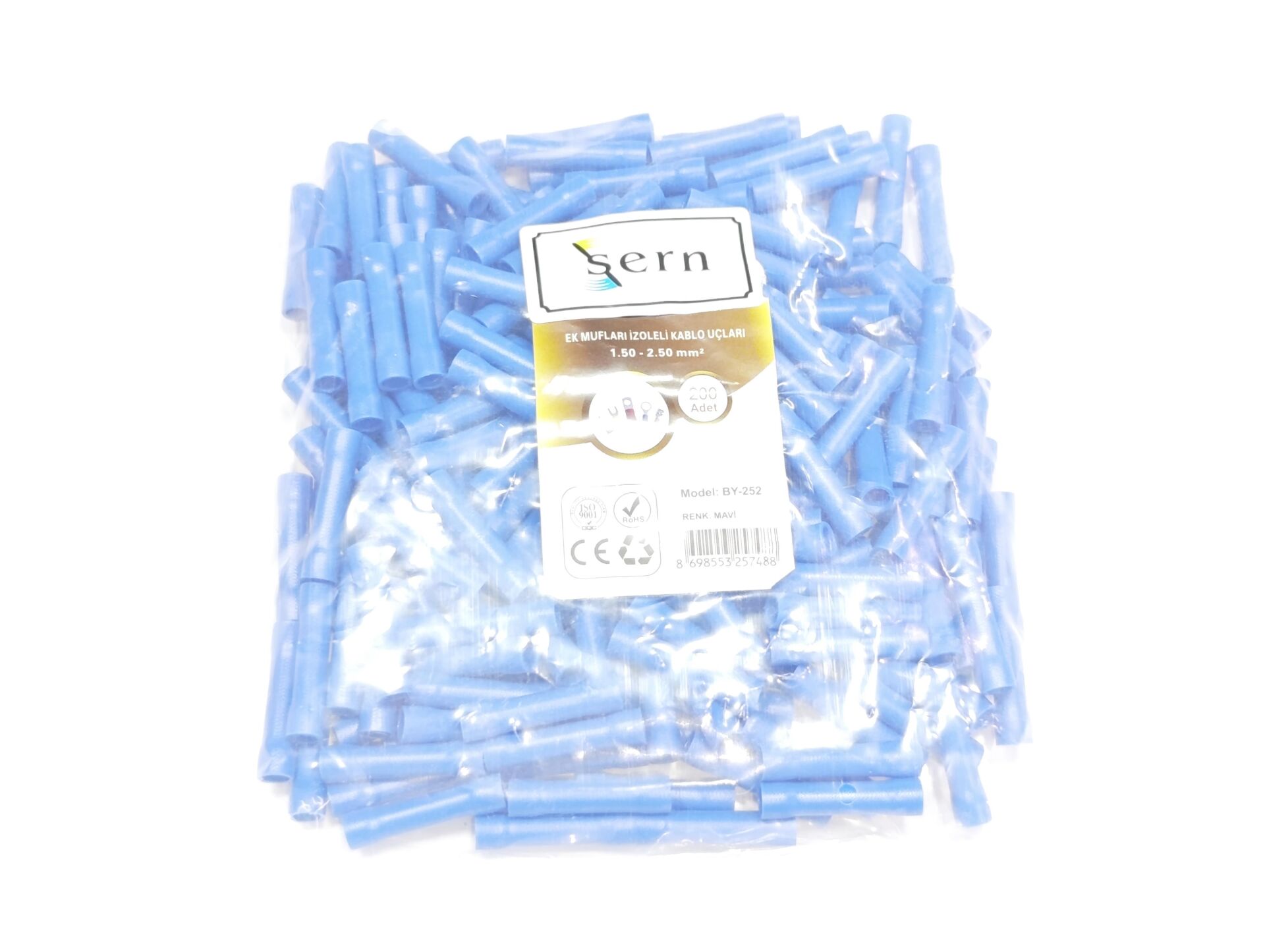 1,50 x 2,50mm² Ek Muf İzoleli Kablo Uçları Mavi Renk - 1 Paket - 200Adet