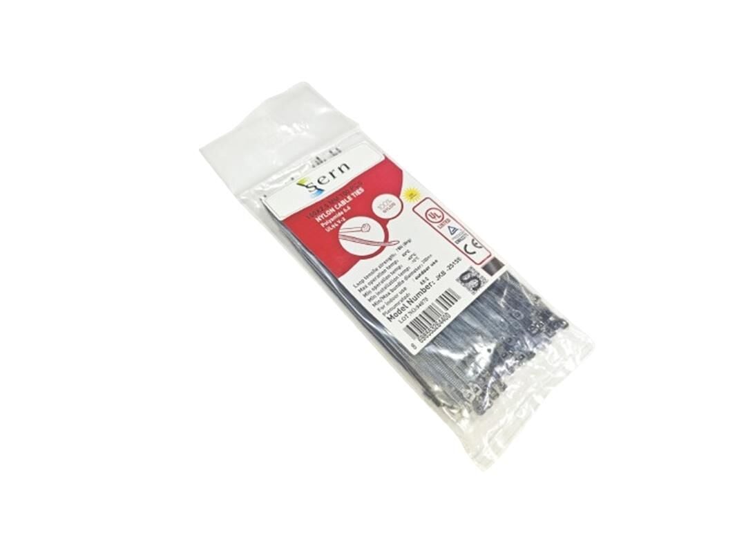 15cm boy 2,5mm kalınlık Standart Siyah Kablo Bağı Plastik Kelepçe - 1 Paket - 100Adet