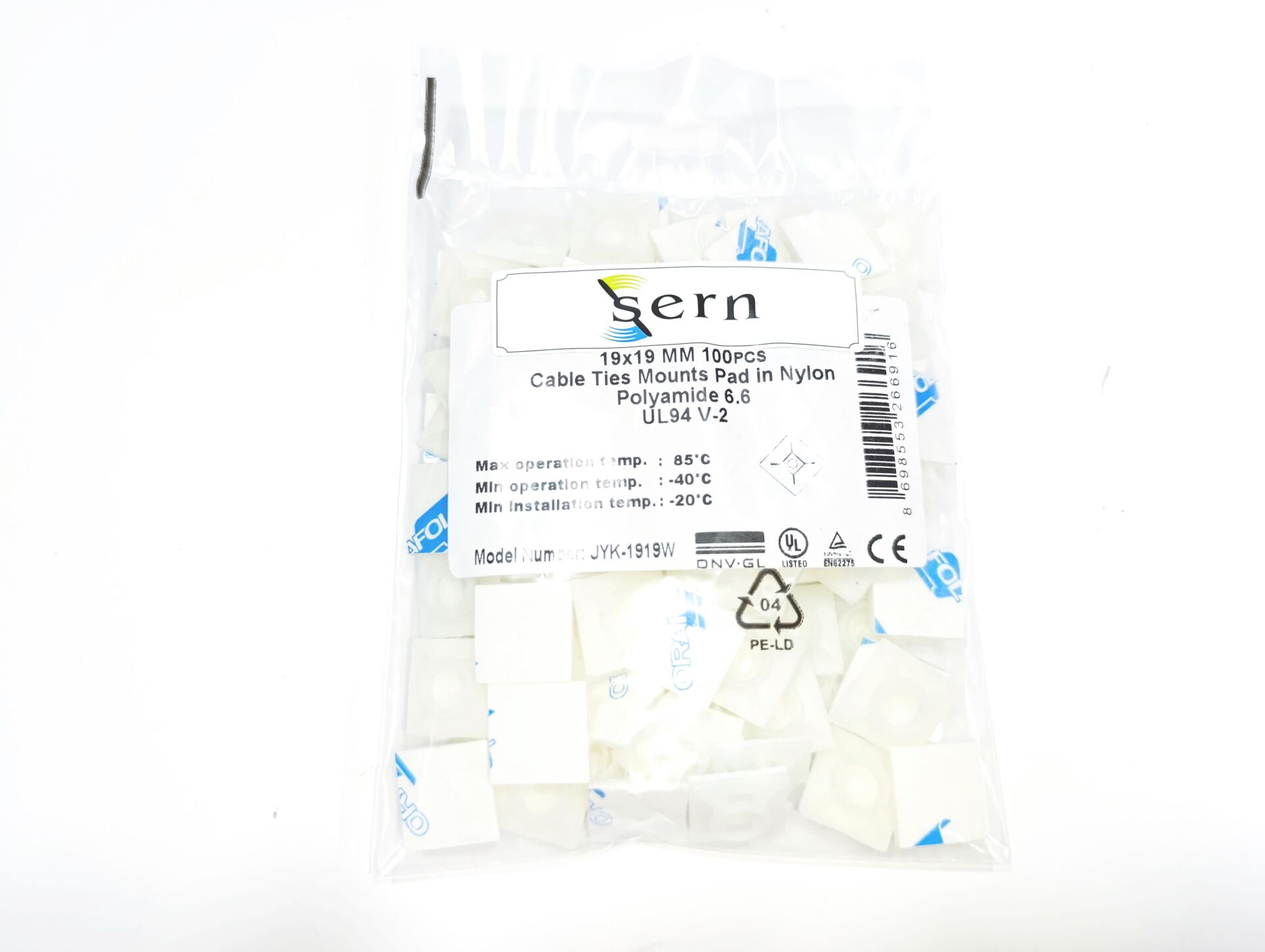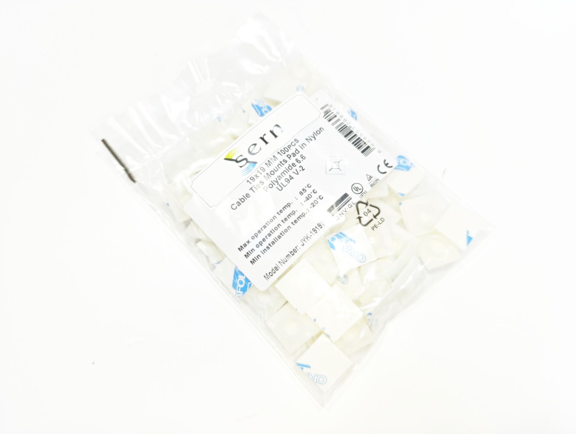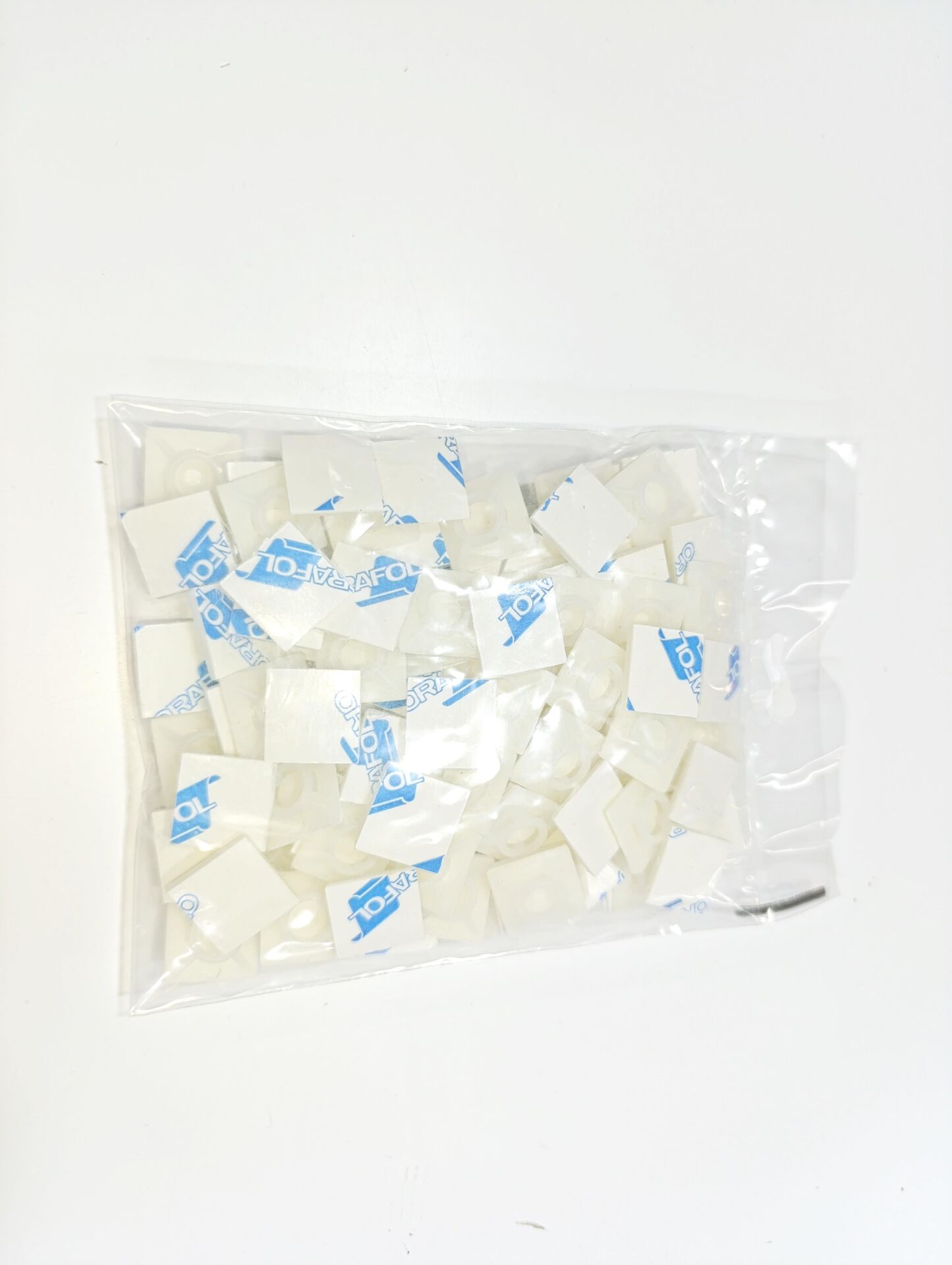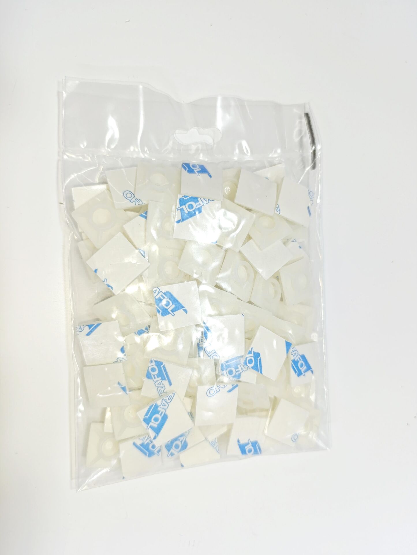 19mmX19mm Yapışkanlı Beyaz Plastik Kroşe - 1 Paket - 100Adet