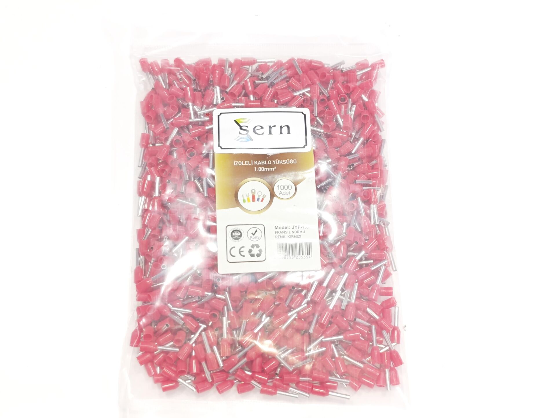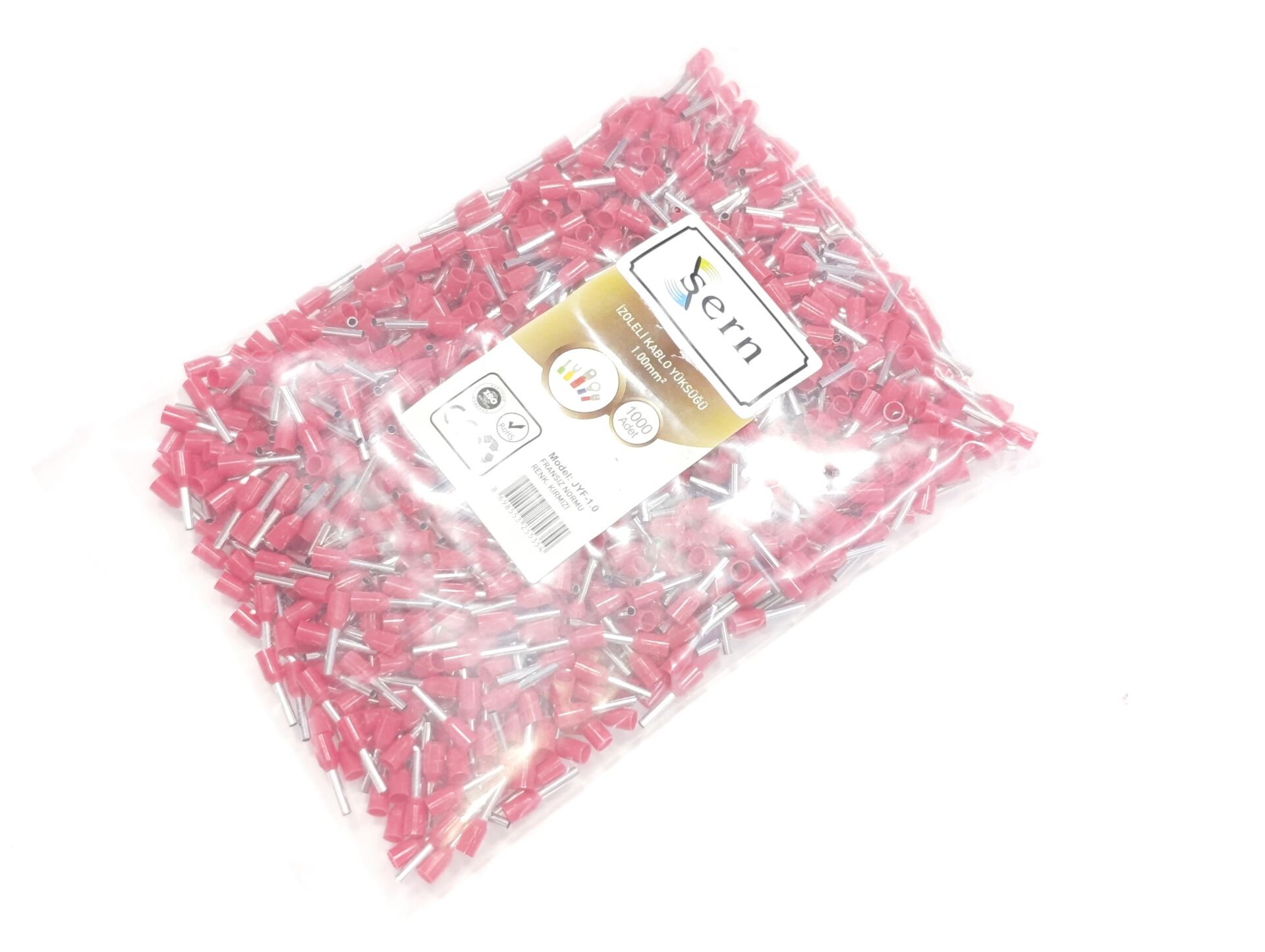 1mm Tek Girişli İzoleli Kablo Yüksüğü Fransız Normu Kırmızı Renk - 1 Paket - 1000Adet