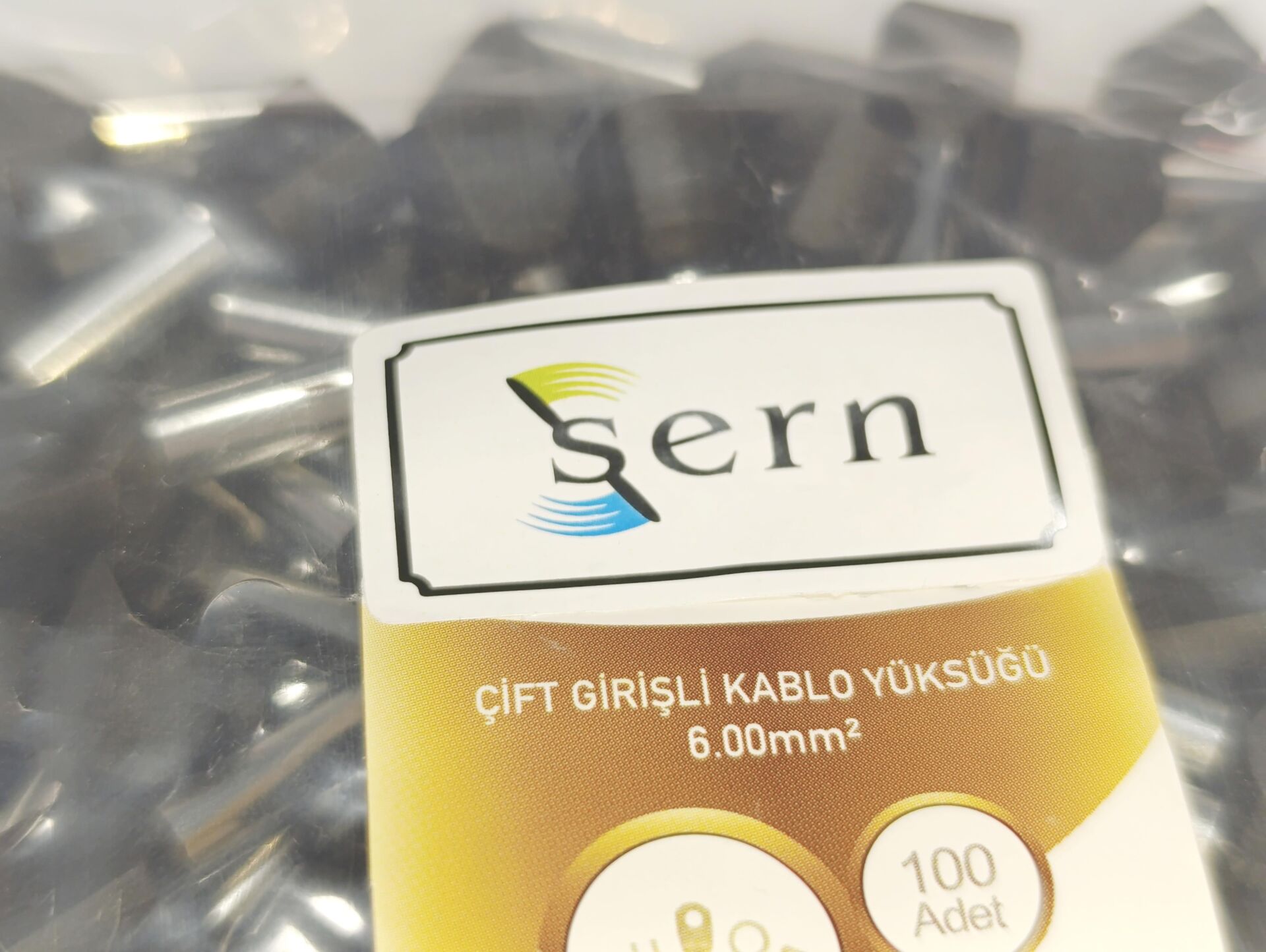 6mm Çift Girişli İzoleli Kablo Yüksüğü Alman Normu Siyah Renk - 1 Paket - 100Adet
