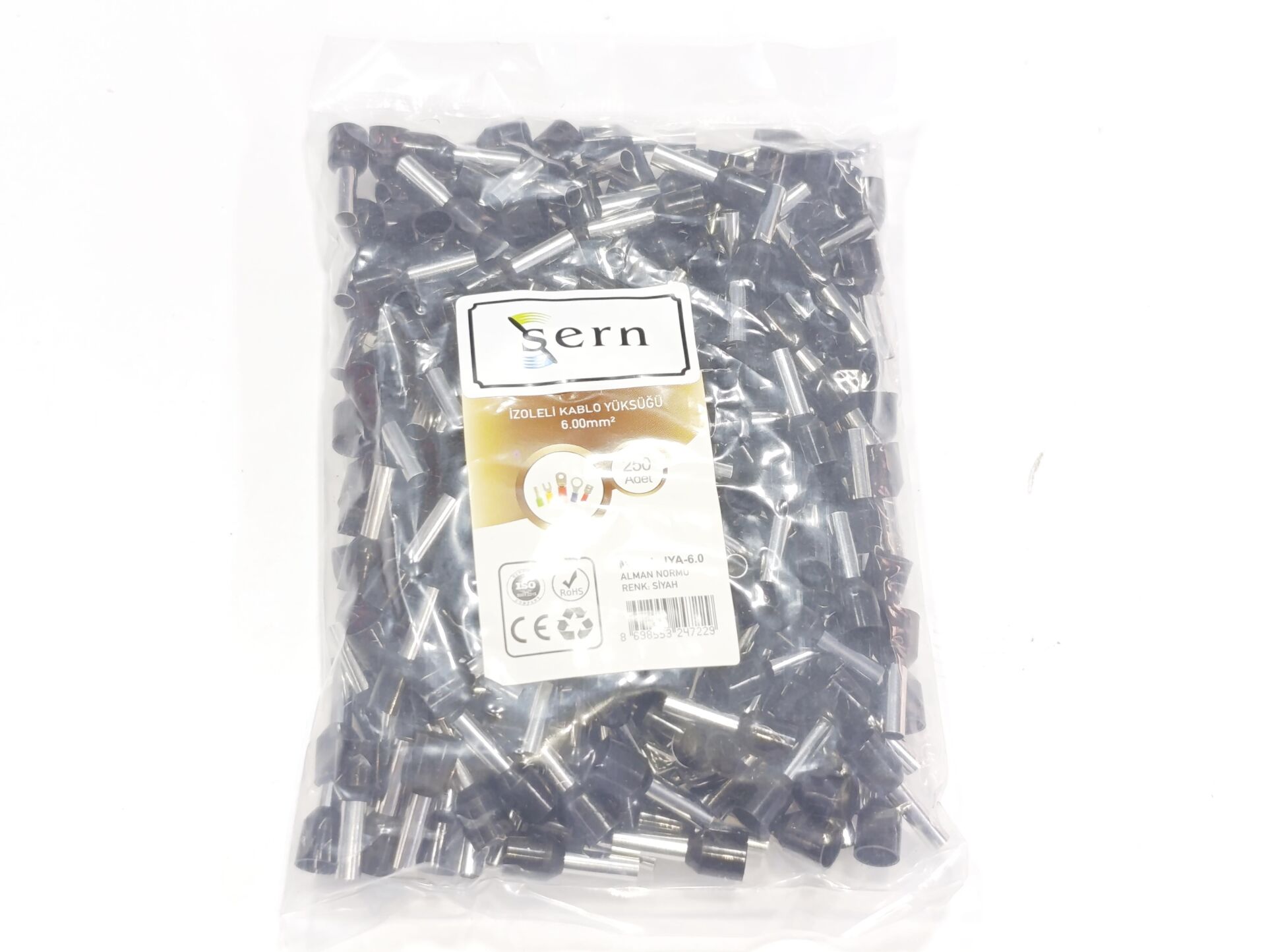 6mm Tek Girişli İzoleli Kablo Yüksüğü Alman Normu Siyah Renk - 1 Paket - 250Adet
