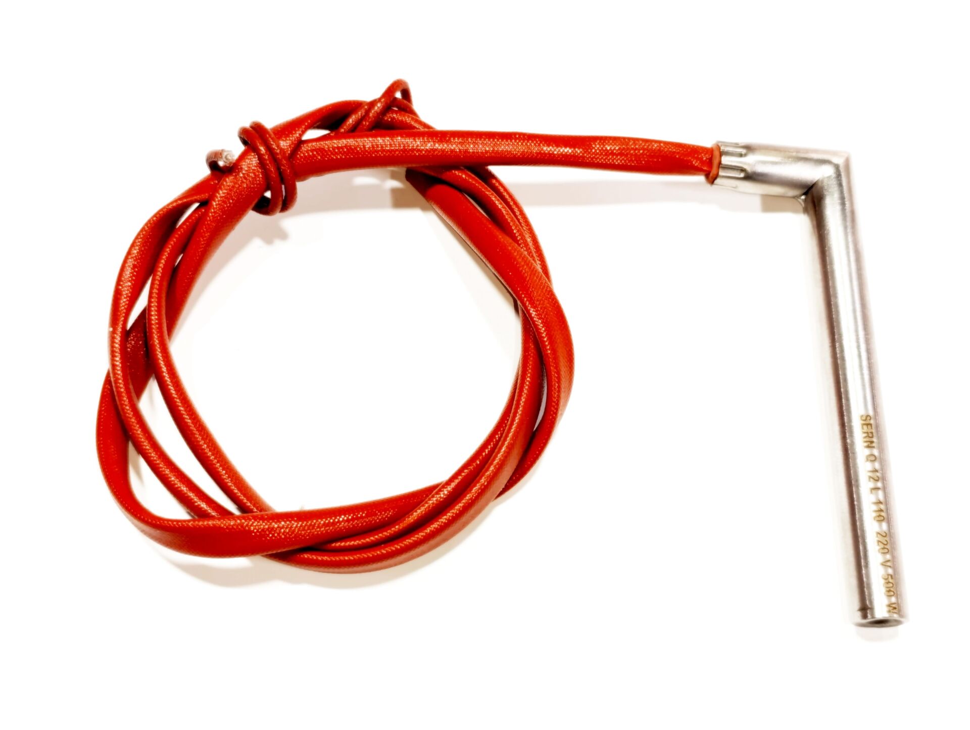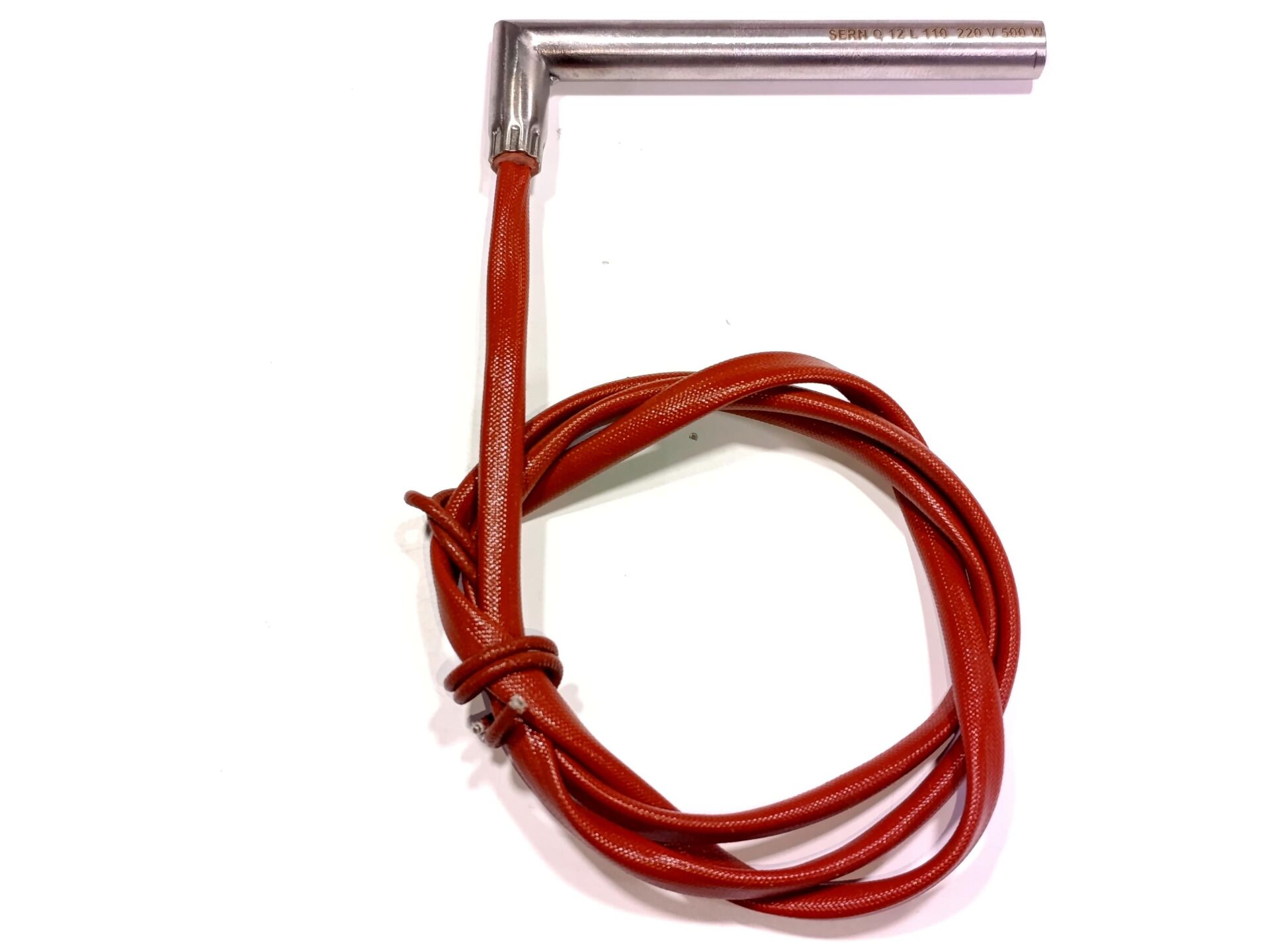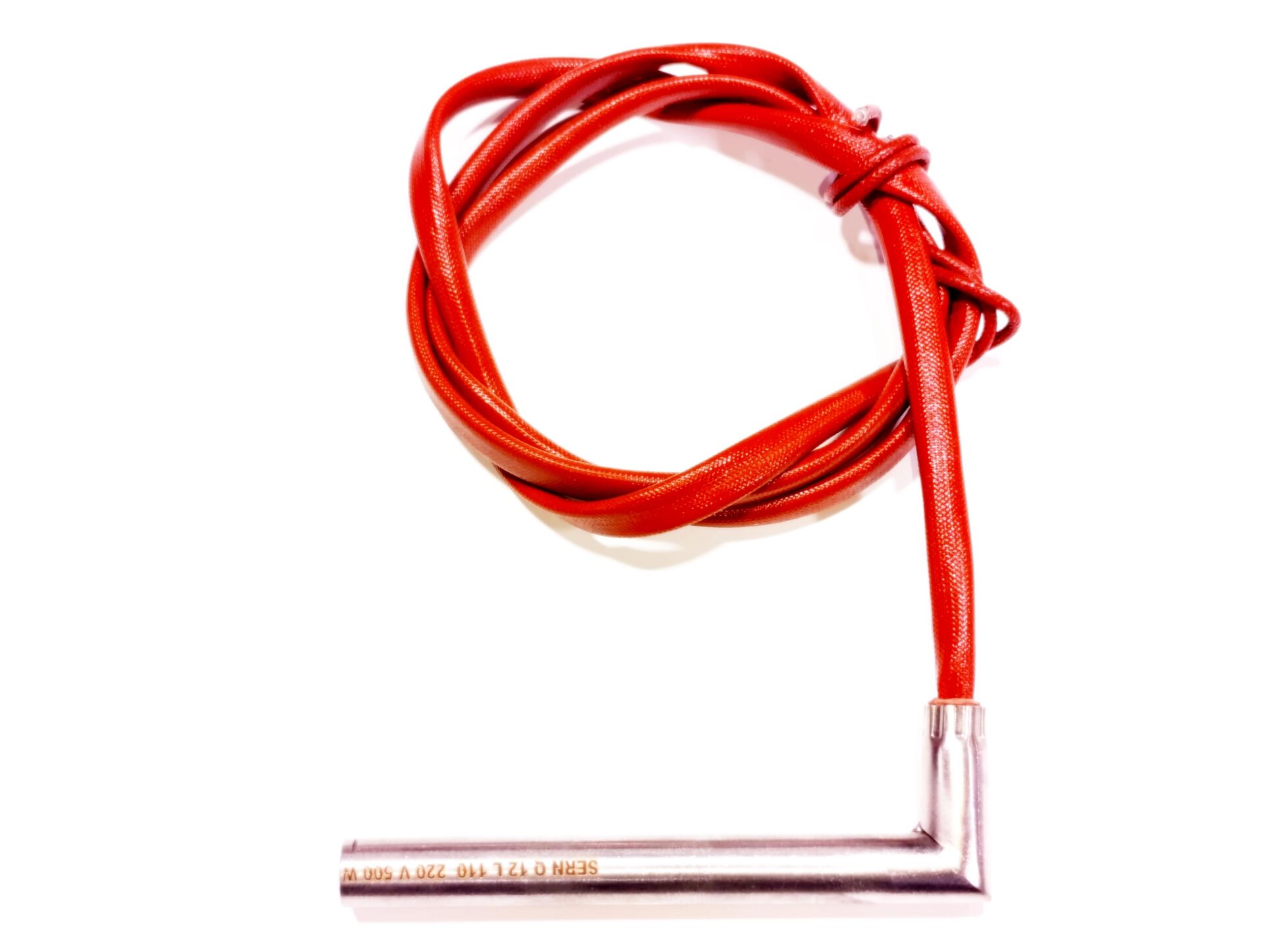 Fişek Isıtıcı Rezistans 11cm boy - 12mm kalınlık - 500 Watt - 230V - Dirsekli 1mt Kablolu