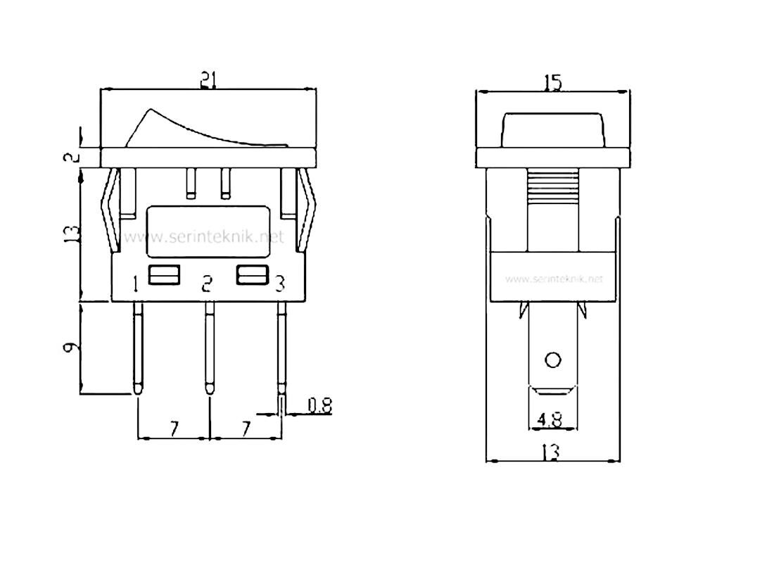 Mini Işıklı Anahtar ON-OFF 3 Uçlu