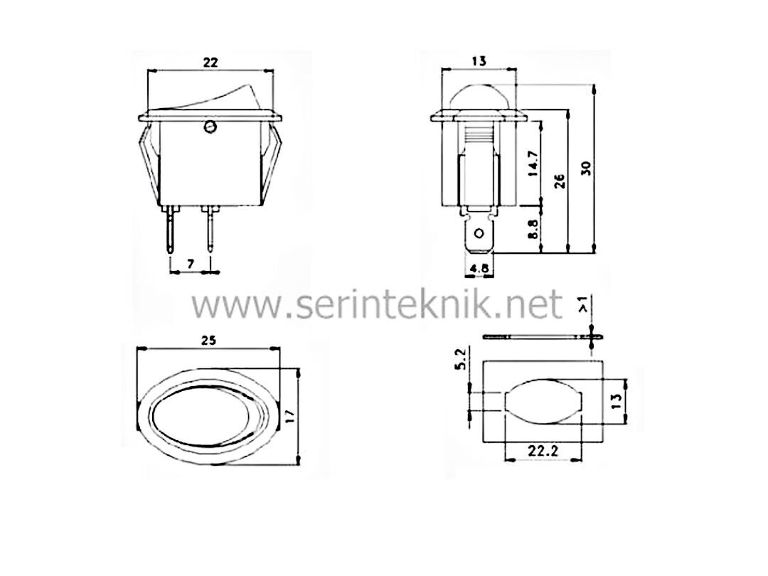 Oval Işıksız Anahtar ON-OFF 2 Uçlu