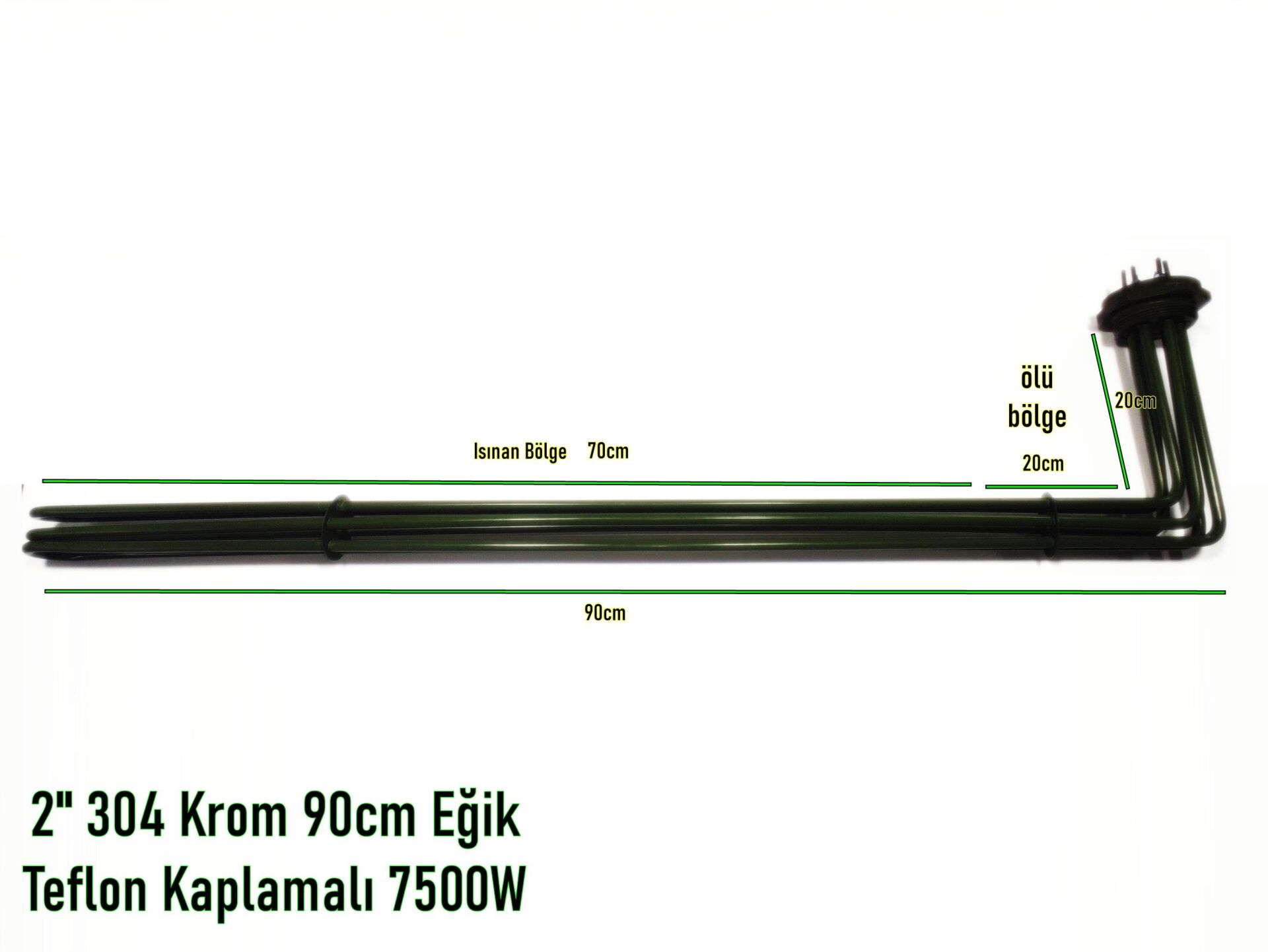 Özel Üretim Teflon Kaplamalı Rezistans 2inç Eğik Kafa 304Cr 90cm 7,5KW Trifaze