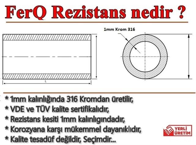 Q Kalite(1mm) 2inç 4,5KW 28,5cm Kafalı Kazan Isıtıcı Rezistansı