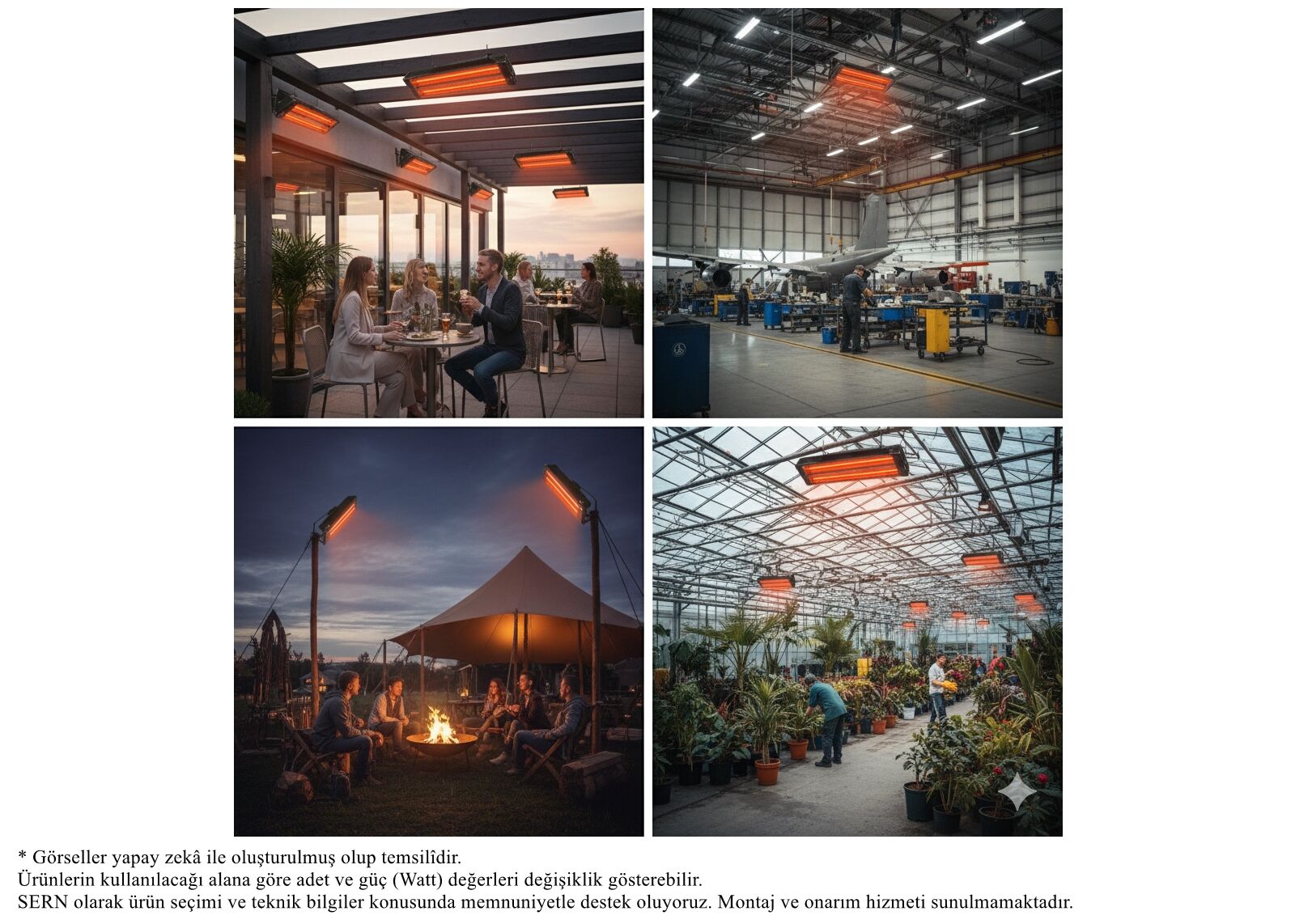 SERN YD6 Model Yade Serisi infrared ısıtıcı, 6000W (6KW) yüksek gücü sayesinde geniş ve yüksek hacimli alanlarda anında ve etkili ısıtma sağlar. Infrared ışınım teknolojisi ile havayı değil, doğrudan insanları, yüzeyleri ve nesneleri ısıtarak enerji kayıplarını minimize eder. Kromize yansıtıcı reflektör yüzeyi, üretilen ısının hedef alana maksimum verimle yönlendirilmesini sağlar ve daha az enerjiyle daha yüksek konfor elde edilmesine yardımcı olur. 380V trifaze çalışma yapısı, endüstriyel ve ticari alanlarda stabil, güçlü ve sürekli performans sunar. Sessiz ve kokusuz çalışma özelliği, kullanıcı konforunu artırırken açık ve kapalı alanlarda sorunsuz kullanım imkânı sağlar.