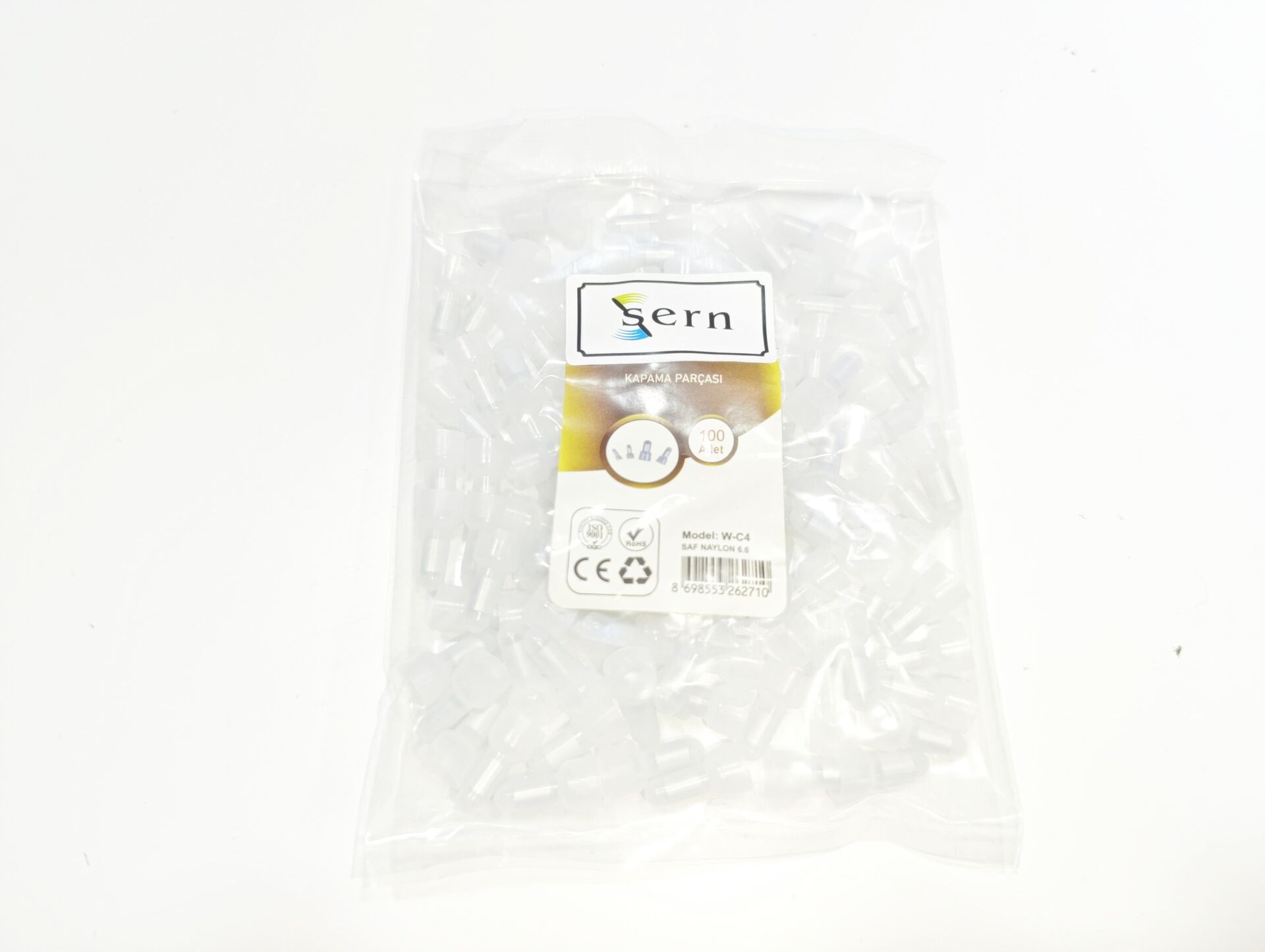 W-C4 Beyaz Plastik Kapama Parçası - 1 Paket - 100Adet