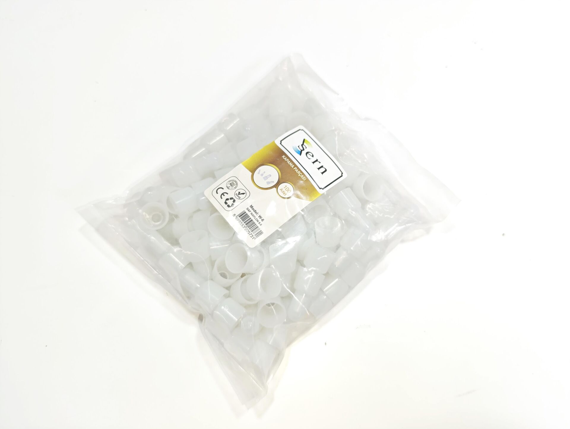 W-C6 Beyaz Plastik Kapama Parçası - 1 Paket - 100Adet